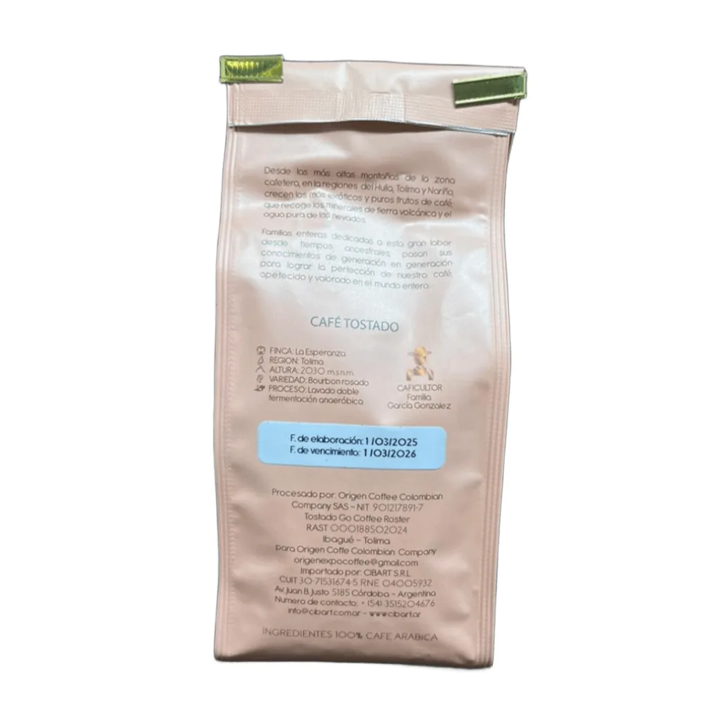 Café tostado en grano Bpurbon rosado. Origen Colombiano.
